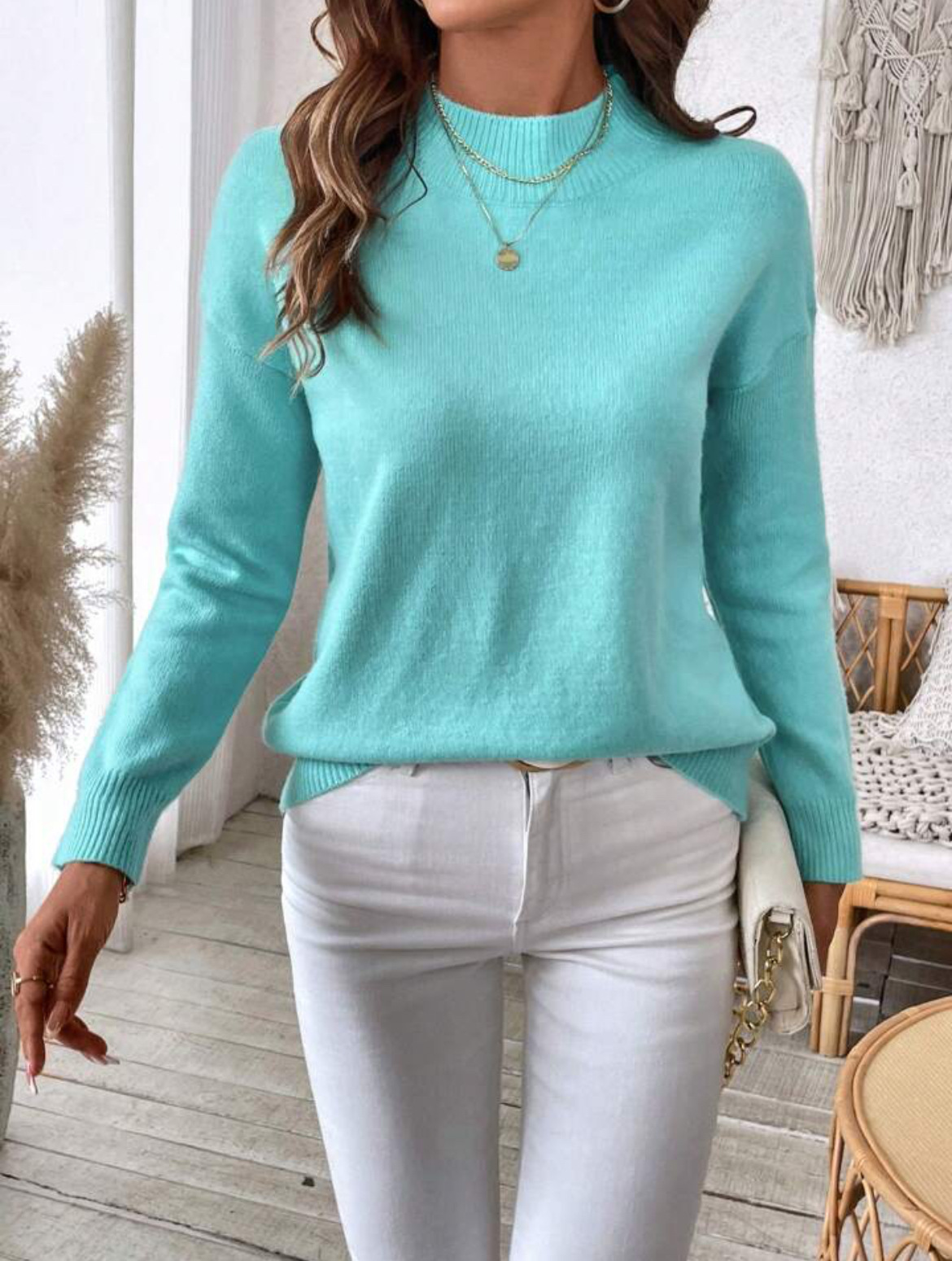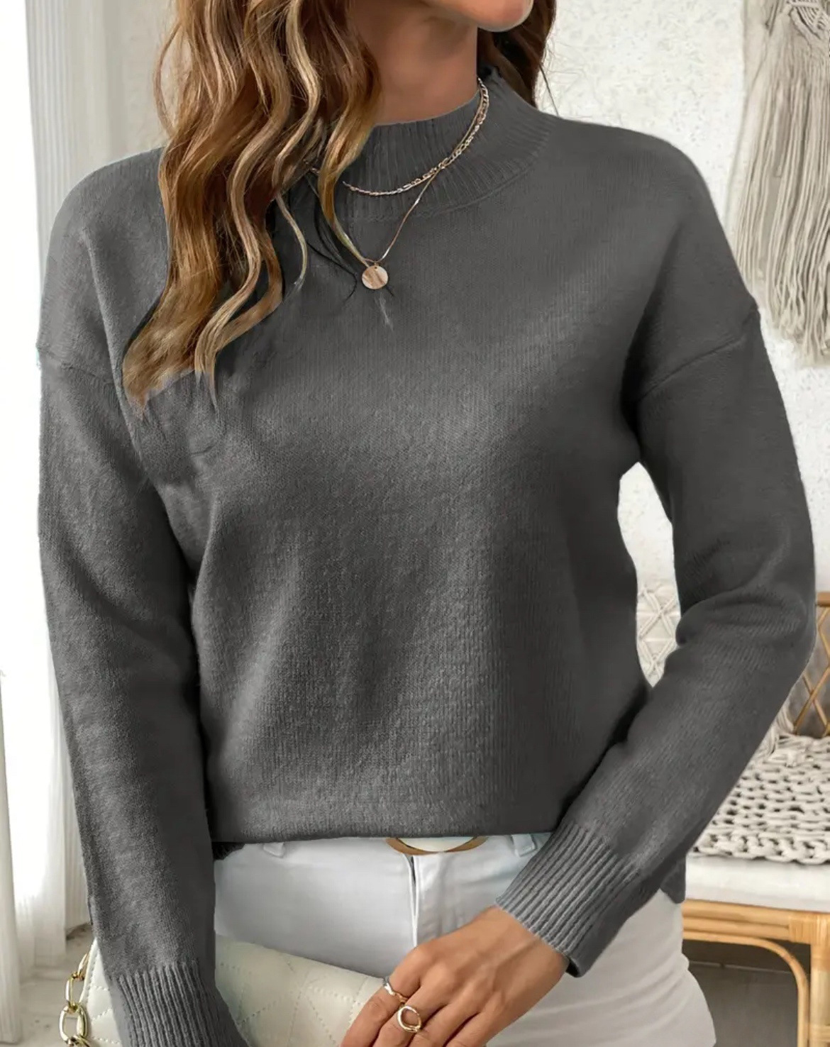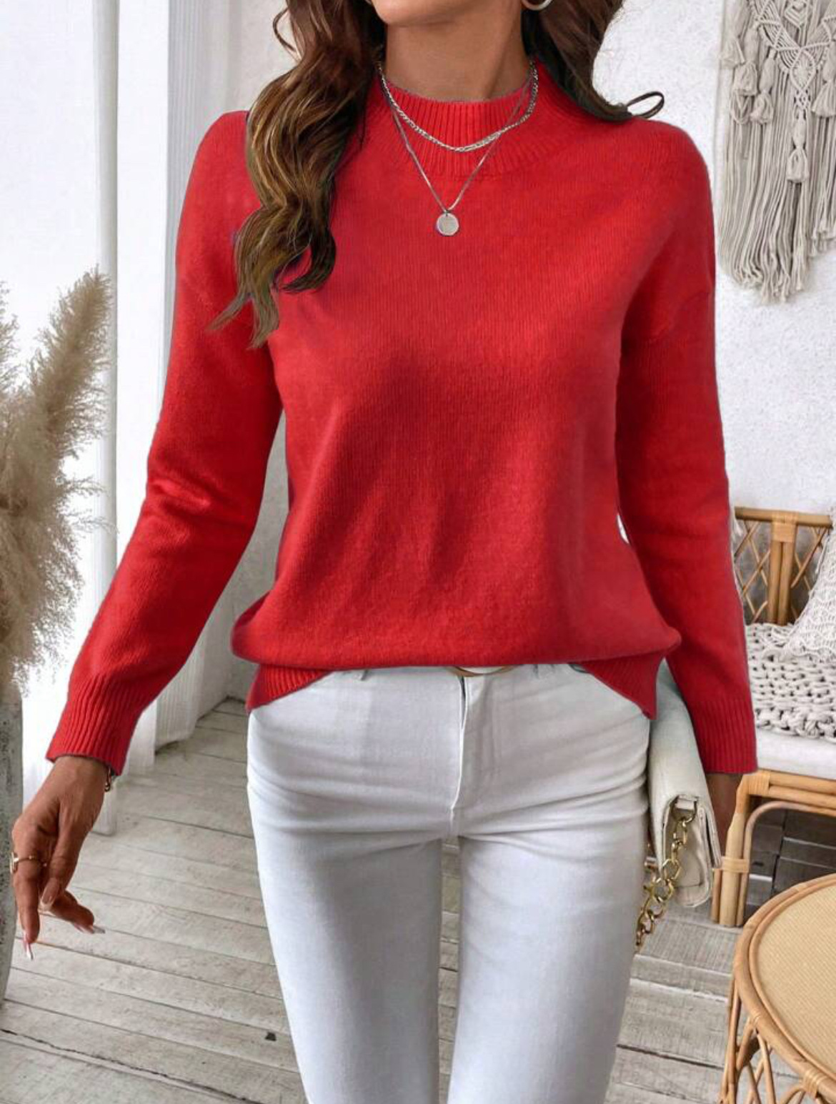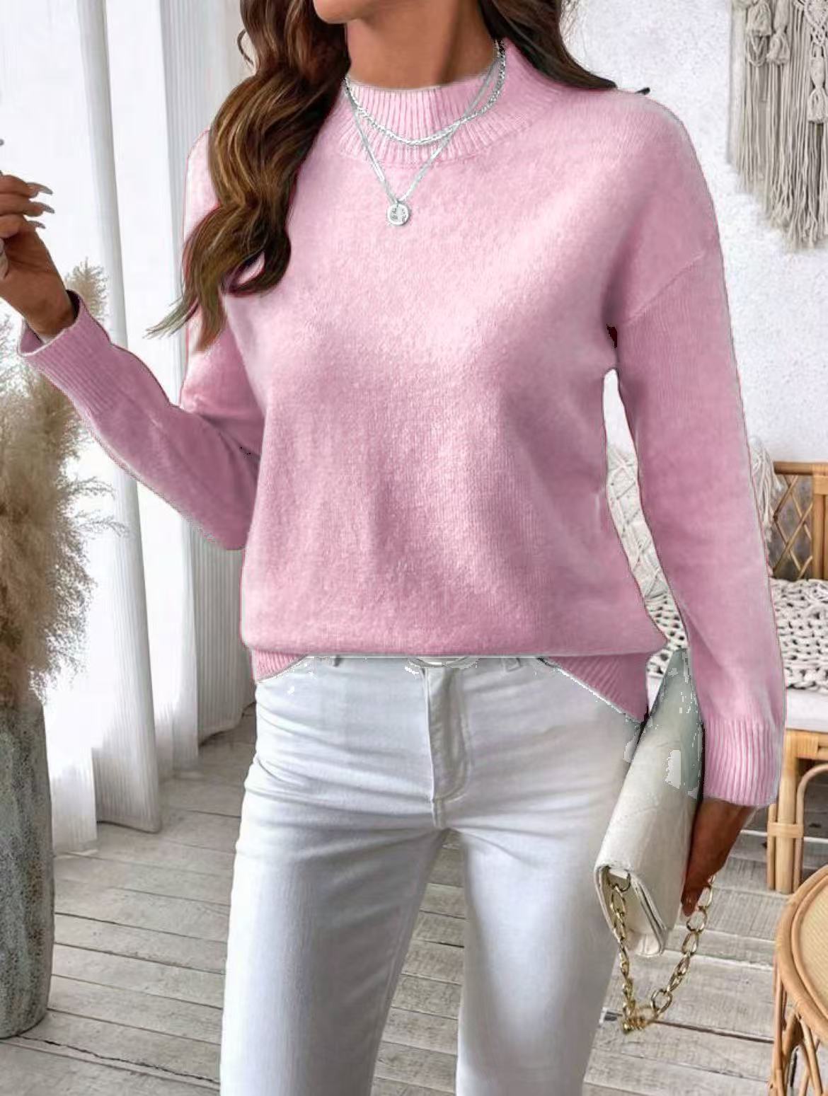 Women’s Solid Color Knitted Sweater – Loose Fit Fashion Pullover Top