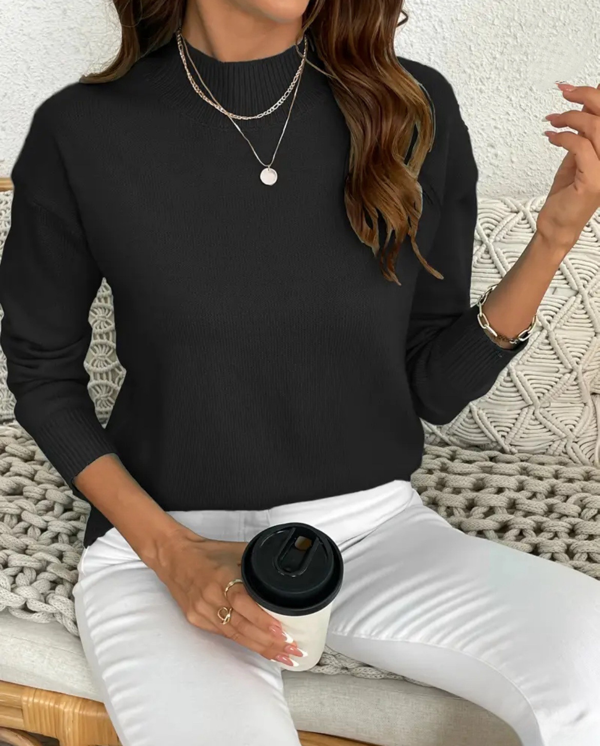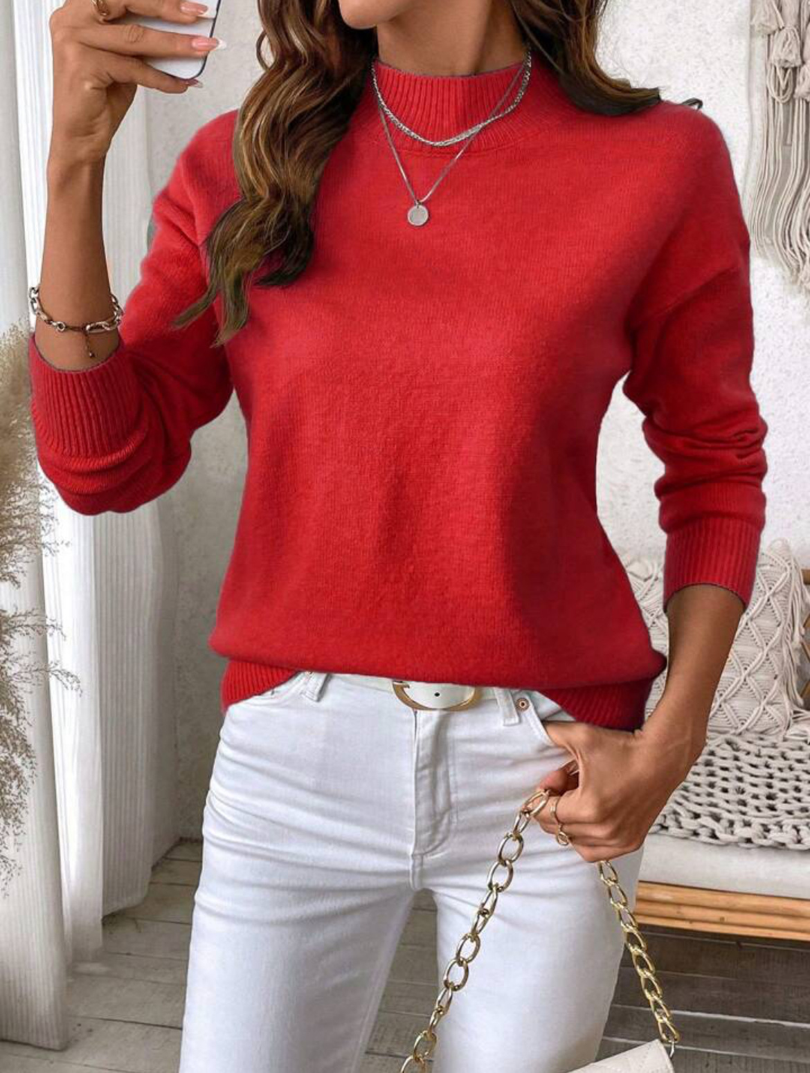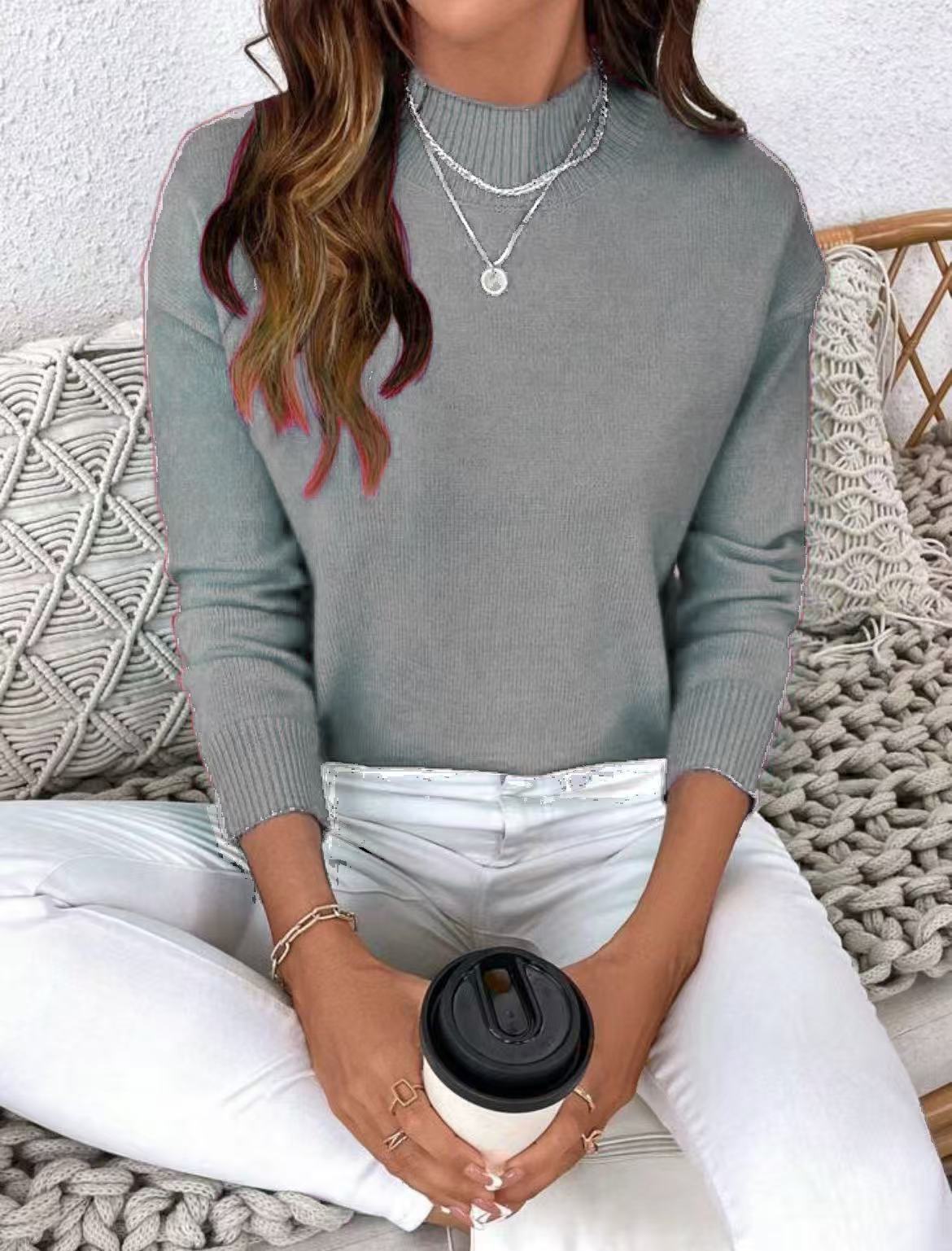 Women’s Solid Color Knitted Sweater – Loose Fit Fashion Pullover Top