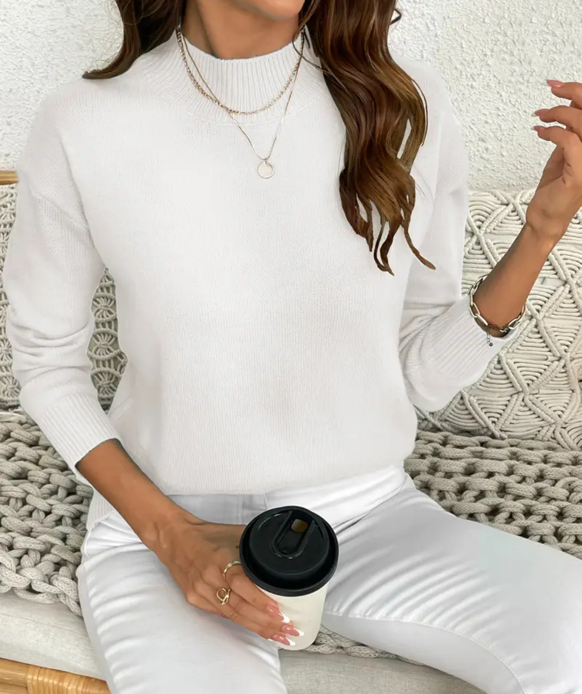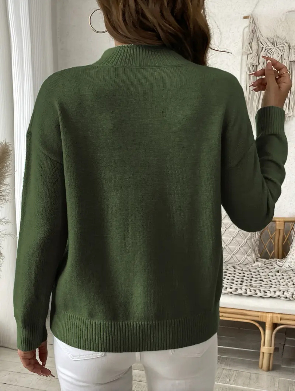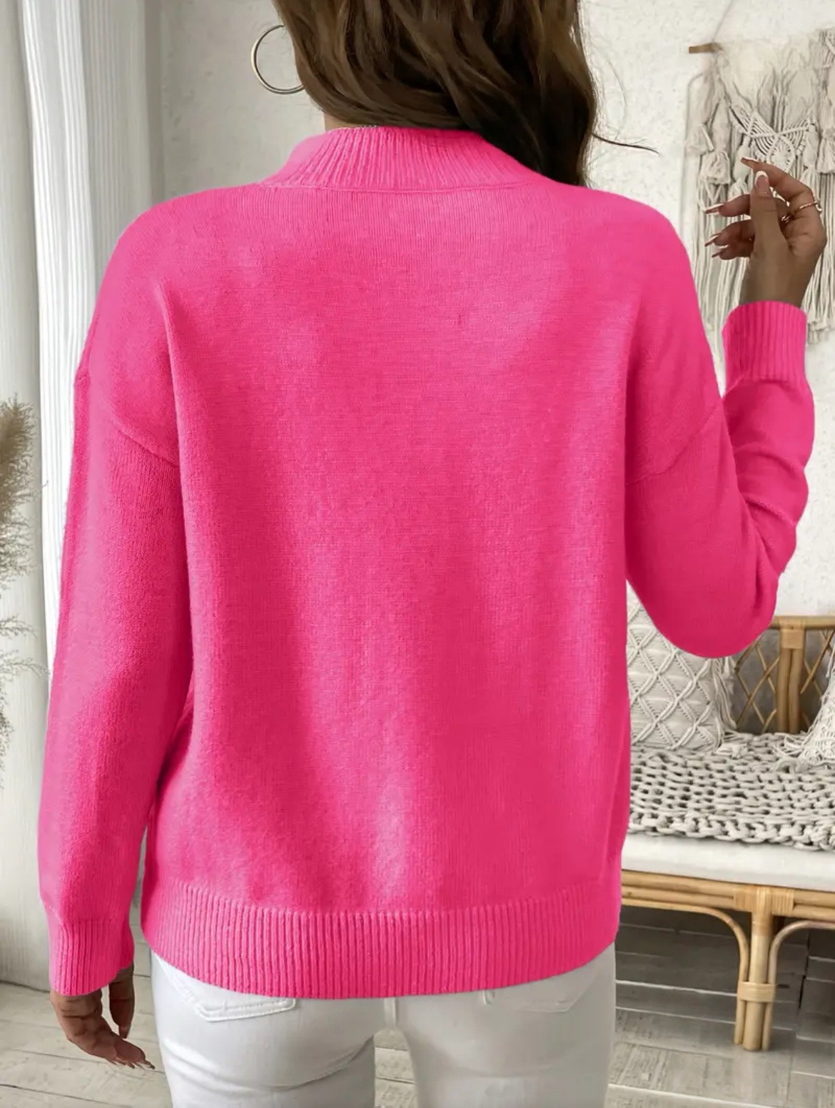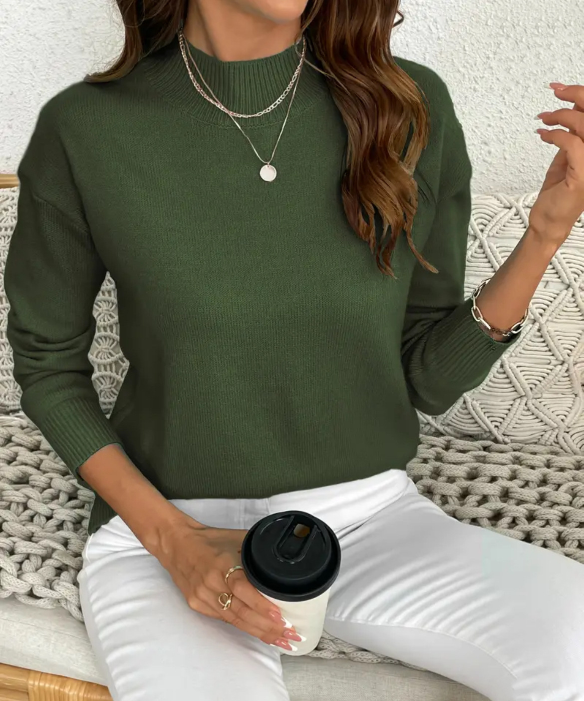 Women’s Solid Color Knitted Sweater – Loose Fit Fashion Pullover Top